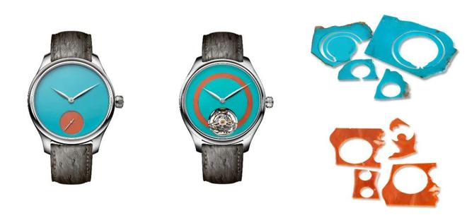勇创者系列小三针概念版Pop腕表与勇创者系列陀飞轮概念版Pop腕表(青金石和柠檬绿玉髓表盘)